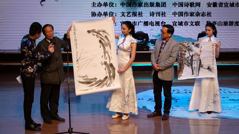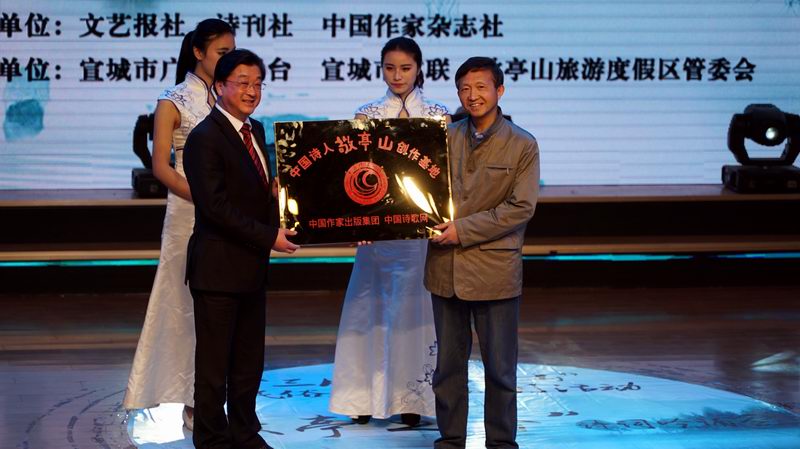 此次诗歌吟诵会由中国作家出版集团、中国诗歌网、宣城市人民政府联合主办,文艺报社、诗刊社、中国作家杂志社协办,市广播电视台、市文联、敬亭山旅游度假区管委会承办。吟诵会现场还举行了“中国诗人创作基地”授牌仪式。(文/宣城新闻网)