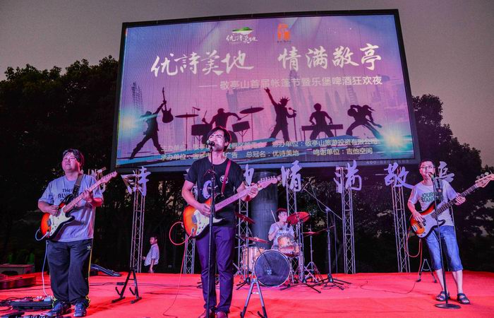 7月22日,“情满敬亭山 首届帐篷节“活动在敬亭山敬亭广场正式拉开帷幕。夜幕下,一顶顶帐篷在生态停车场连成一片,大家一起吃烧烤、喝啤酒、叙友情;在敬亭广场,活动主办方敬亭山旅游度假区为来自各地的市民游客们,精心安排了摇滚音乐表演,台上台下洋溢着一片欢声笑语。“情满敬亭山首届帐篷节”活动将连续举办一个月(7月22日-8月20日),除帐篷露营以外,港台电影嘉年华、钢琴、街舞、跆拳道、古筝等专场等节目将在敬亭广场陆续上演。