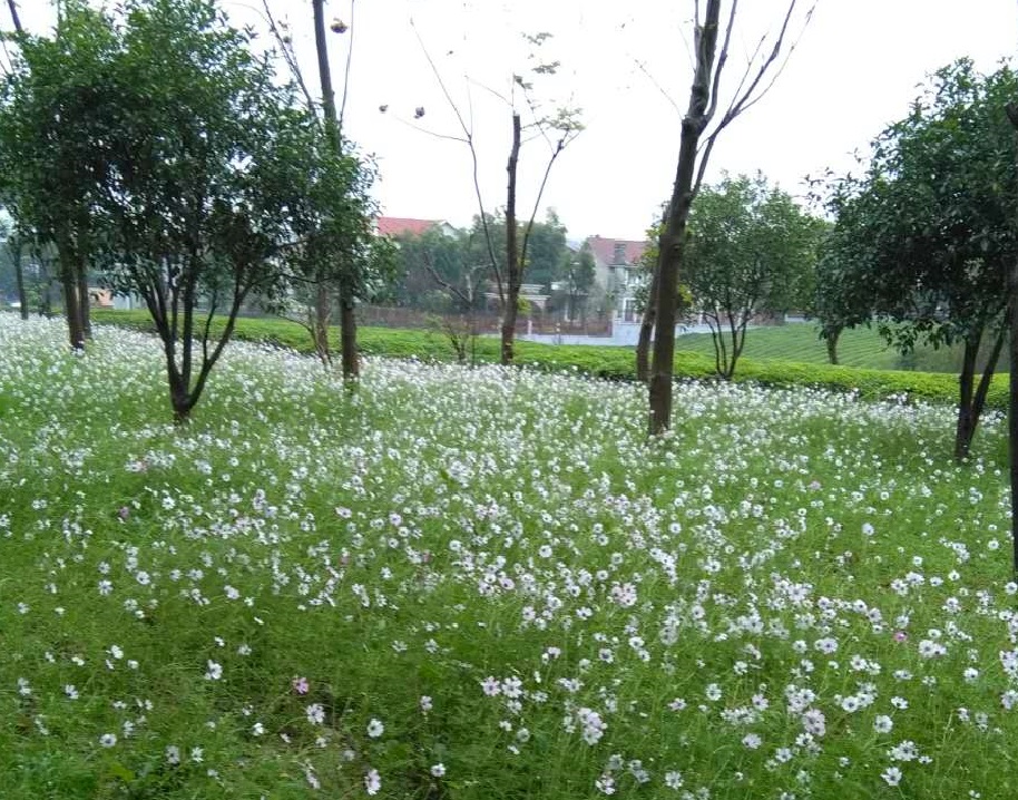 此绿化项目为园林管理科9月份启动的进山路景观提升工程,播种的草本花卉有二月兰、波斯菊、香雪球等,总提升面积约8亩。