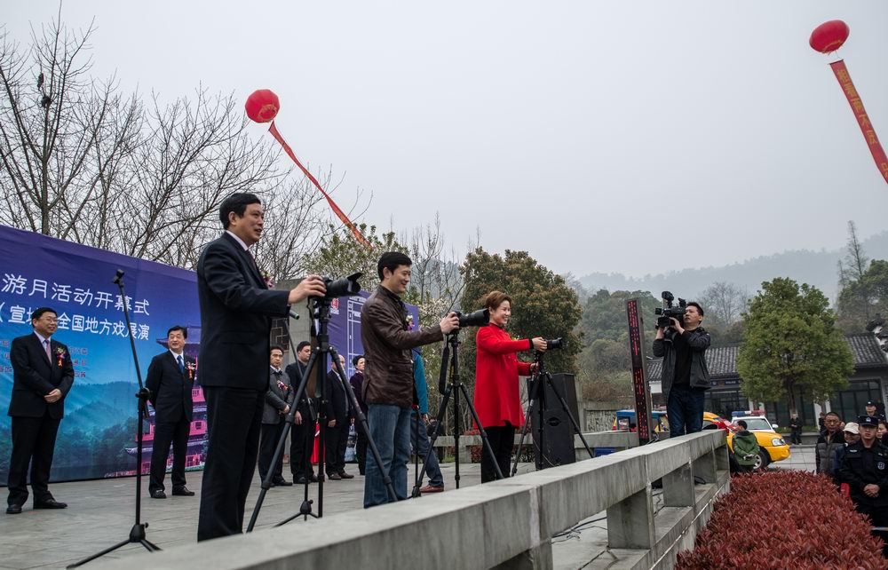 开幕式主要有长三角旅游战略合作伙伴授牌、向首批免费游宣城的中国好人家庭献花、省级以上摄影家协会会员游摄宣城优惠政策发布、“江南诗山秀水——敬亭山•宛陵湖”四季旅游全国摄影大赛启动等环节。随着张冬云市长宣布开幕,为时一个月的“三月三•敬亭山”民俗文化旅游月活动正式开始!
