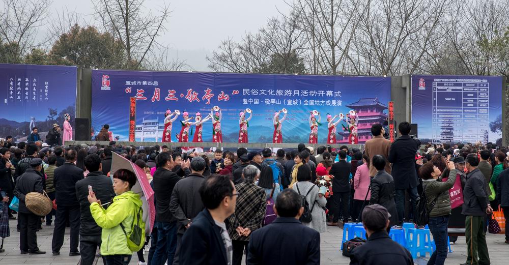 3月30日,农历三月初三上午,敬亭广场上人头攒动,热闹非凡。第四届“三月三•敬亭山”民俗文化旅游月活动开幕式暨中国敬亭山(宣城)地方戏展演这里隆重举行。市长张冬云、市人大副主任徐德美、市政府副市长张黎勇、市政协副主席唐佑文、中国摄影家协会副主席李舸、市政府秘书长王华以及市旅发委、市敬亭山管委会、市文明办、市广电台、市民委、团市委、市文联、宣州区等相关单位负责人出席了开幕式。