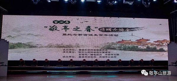 4月22日晚,由宣城市旅游发展委员会主办,敬亭山旅游度假区管委会、市广播电视台、市文联承办,市财政局和市公安局协办的第四届“敬亭之春”诗词吟诵会暨纪念新诗诞生百年活动在市广电台演播大厅举行。30余位中外诗人、专家学者和广大诗歌爱好者欢聚一堂,吟咏抒怀,品味“诗和远方”。