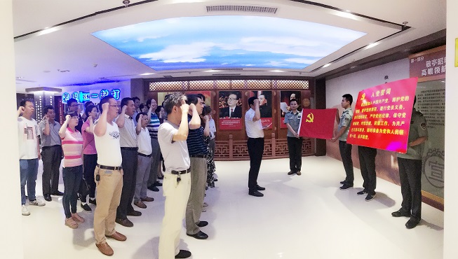 在廉政教育基地,全体党员干部跟随讲解员依次参观了政策篇、警示篇、忏悔篇、剖析篇、预防篇等展厅,通过图片介绍、投影观看、情景再现等方式,接受了一次深刻的思想洗礼、廉政之旅。最后,全体党员面对党旗重温了入党誓词。