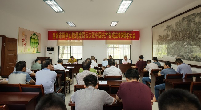 为庆祝中国共产党建党96周年,2017年6月30日,市敬亭山旅游度假区党工委召开全体党员大会。