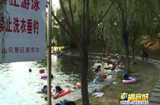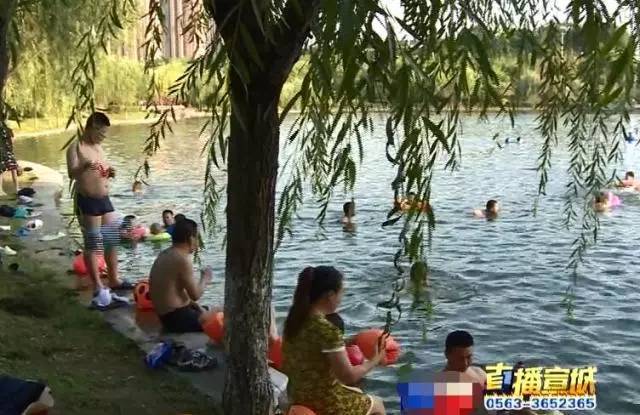 天气炎热,本是景观湖的敬亭湖,成为了部分市民的天然泳池。