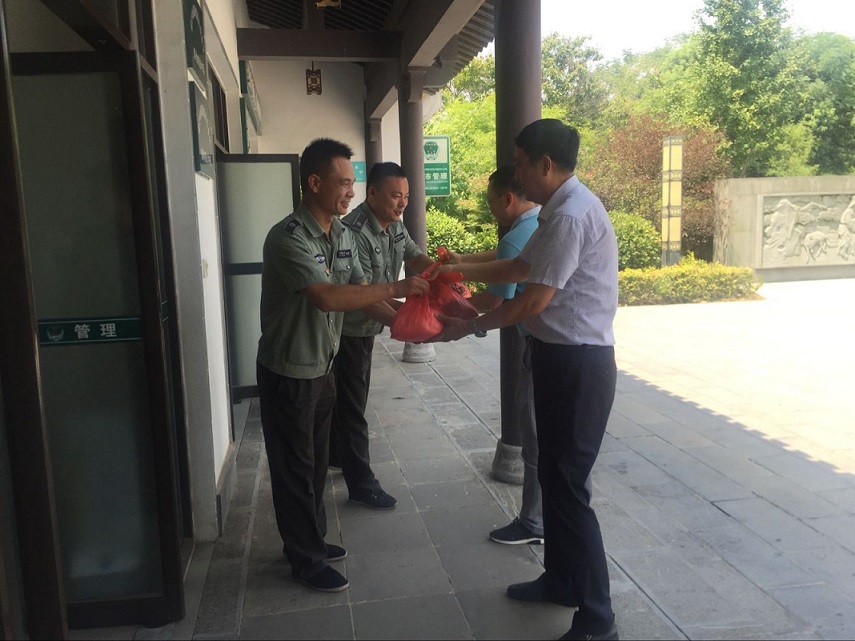 刘维刚等相关领导在慰问中叮嘱工作人员一定要合理安排作息时间,保持充沛的体力和良好的精神状态,安全工作,劳逸结合,他们强调,当前正值高温季节,广大一线职工奋战在各自岗位,为景区提供安全、整洁、舒适、有序的游览和工作环境,对奋战在景区一线的广大职工、工人致以问候和感谢。并要求相关科室要高度重视高温天气下的防暑降温和安全生产工作,做好一线工作人员的后勤保障。