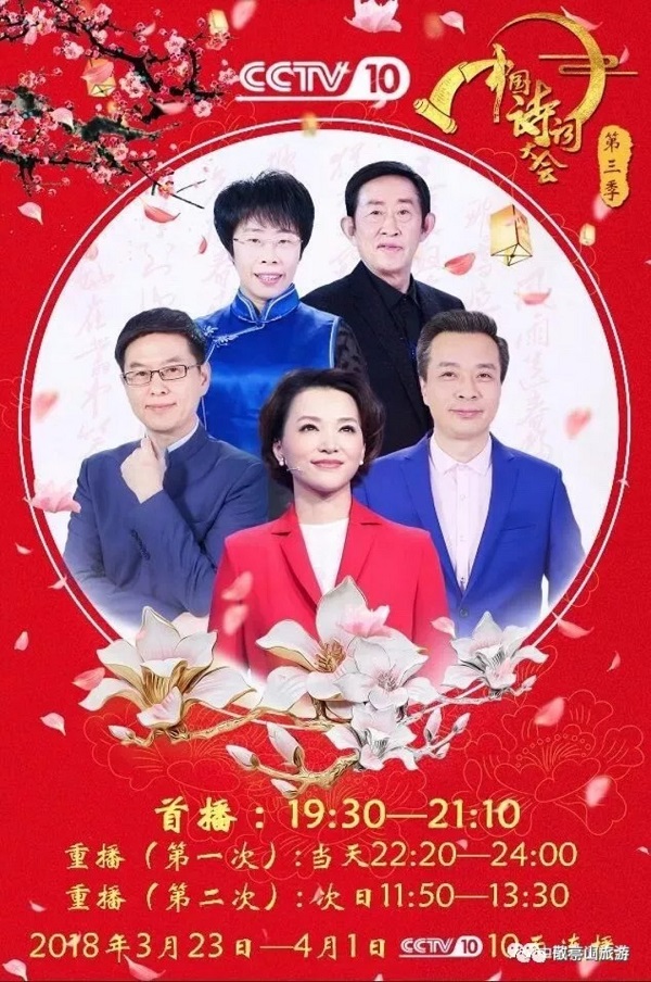 深受观众喜爱的中央电视台《中国诗词大会》节目第三季于3月23日在中央十套首播,在3月24日19:30分《中国诗词大会》第三季第二场开场时播放了敬亭山的专题宣传镜头,带领全国观众共赴了一场“春到敬亭诗意浓”的诗词之约。