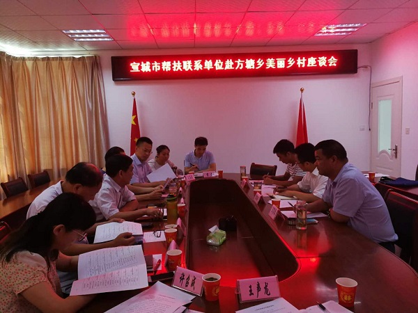 宦朝东一行现场考察了方塘乡美丽乡村建设有关情况,并展开了座谈,对下一步的帮扶工作从资金帮扶、项目帮扶两方面进行了研究和布置。